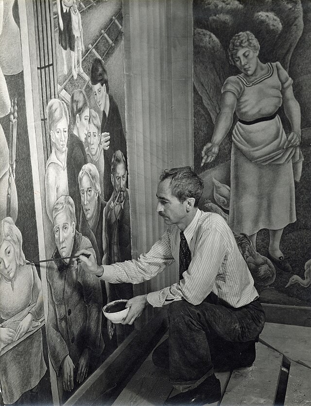 A Missouri‑born painter whose sweeping murals and dynamic compositions captured the movement, energy, and contradictions of American life.